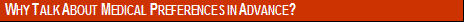 Communication is the single most important step in health care planning. Talk about your wishes with the people who may be called upon to speak or decide for you. Why?