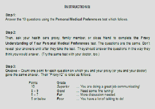 How well does your family, proxy, or doctor know your health care wishes? This short test can give you some sense of how well you have communicated your wishes to them. Consider this a tool to promote better conversation and understanding.
