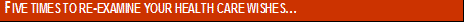 Advance planning for health care is always a work in progress. That's because circumstances change, and lives change. One's values and priorities even change. As a sage remarked, “The world looks different when you're horizontal rather than vertical.”